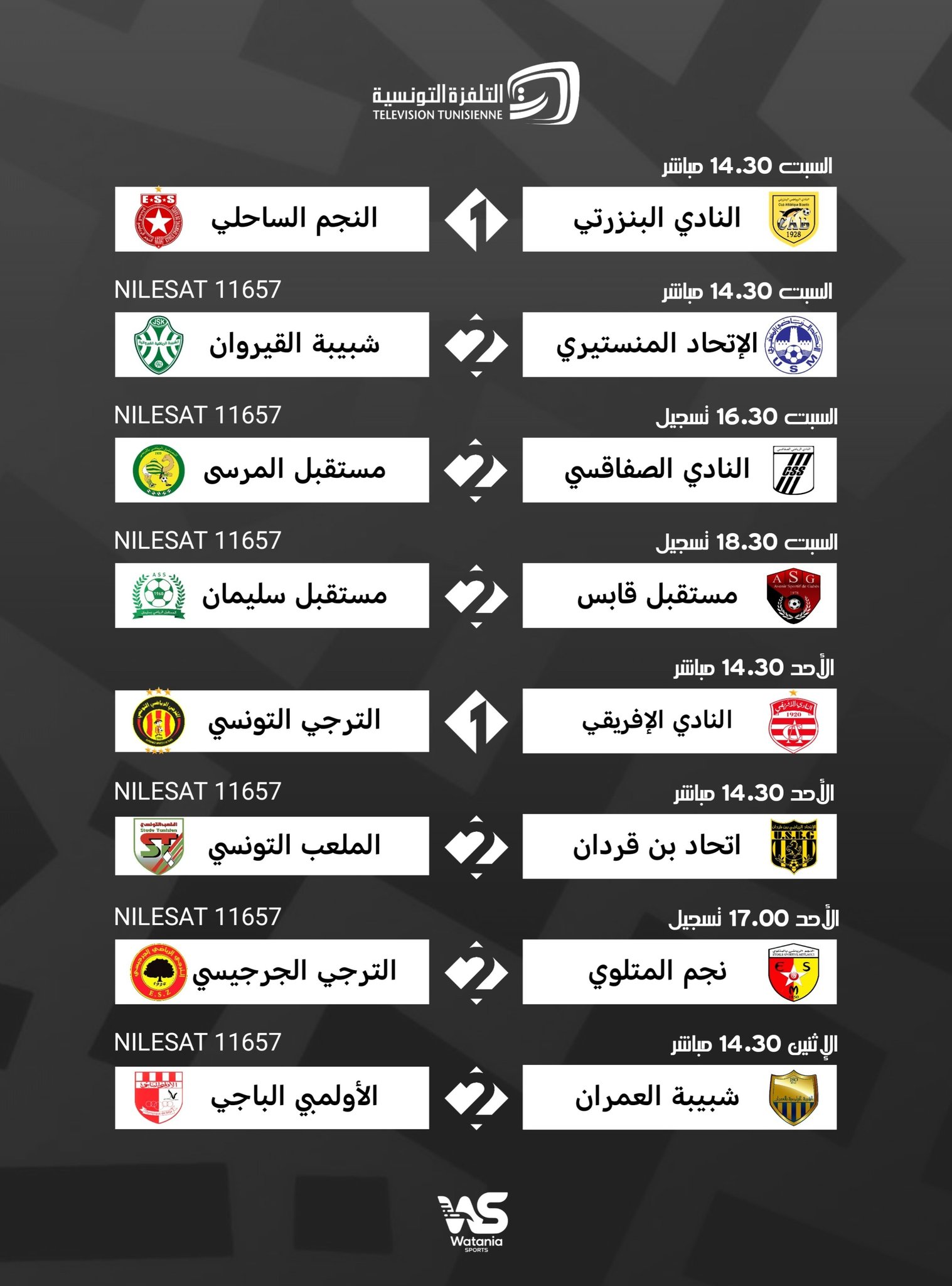 أعلنت التلفزة الوطنية عن برنامج النقل التلفزي لمباريات الجولة 14 من بطولة الرابطة المحترفة الأولى لكرة القدم: