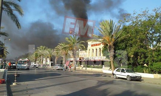 جد صباح اليوم الجمعة 26 أوت 2016 حريق بأحد المراكز التجارية في المنطقة السياحية ياسمين الحمامات بالقرب من قرطاج لاند.