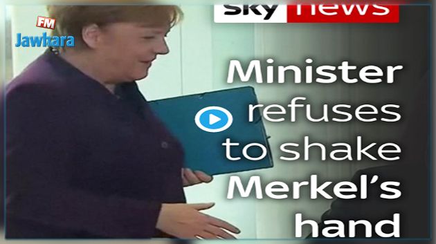 شاهد : وزير الداخلية الألماني يرفض مصافحة أنجيلا ميركل