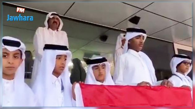 شاهد.. أمير قطر الوالد يردّد النشيد الوطني التونسي وأحفاده يرفعون العلم