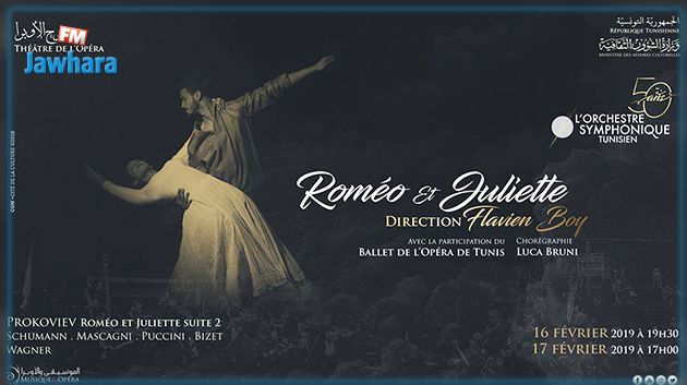 ينظم قطب الموسيقى والأوبرا لمسرح الأوبرا ,ضمن عروض الأركستر السمفوني التونسي ,عرض "روميو وجولييت" قيادة "فلافيان بوي" وذلك يومي السبت 16 فيفري 2019 انطلاقا من السابعة والنصف مساء ويوم الأحد 17 فيفري 2019 انطلاقا من الخامسة مساء بمسرح الأوبرا بمدينة الثقافة.