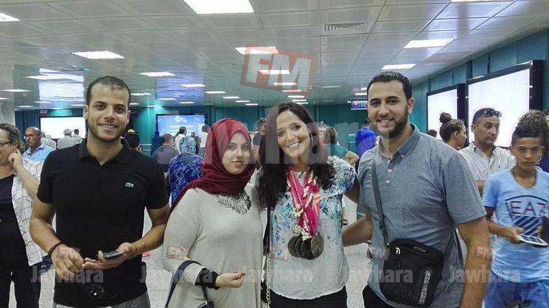 استقبال البطلة التونسية سارة الاجنف في مطار تونس قرطاج