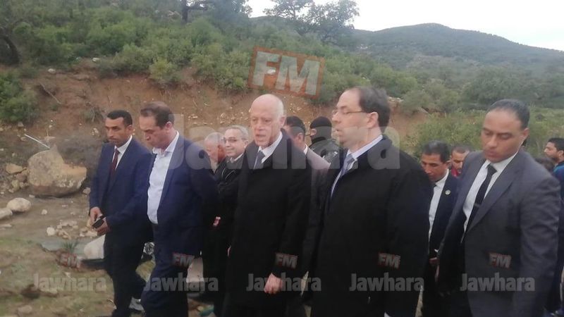 قيس سعيد و يوسف الشاهد يصلان مكان حادث إنقلاب الحافلة